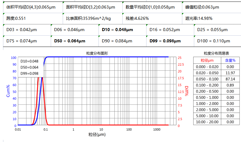 二、顏料粒徑分布的影響 通過激光粒度儀可測得顏料粒徑分布跨度,在同一形狀微粒中,粒徑分布跨度越小,性能越好。相比非針狀粒子,針狀粒子具有更強的著色力。